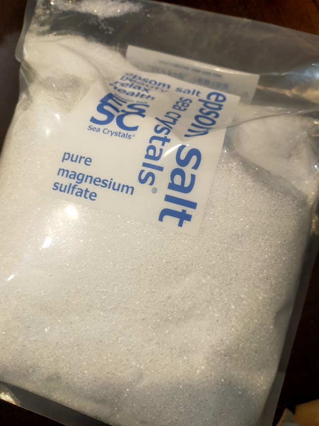 後で知りましたが、エプソムソルトは塩分0%とのこと。天然のミネラル成分である「硫酸マグネシウム」の結晶だそうです。
